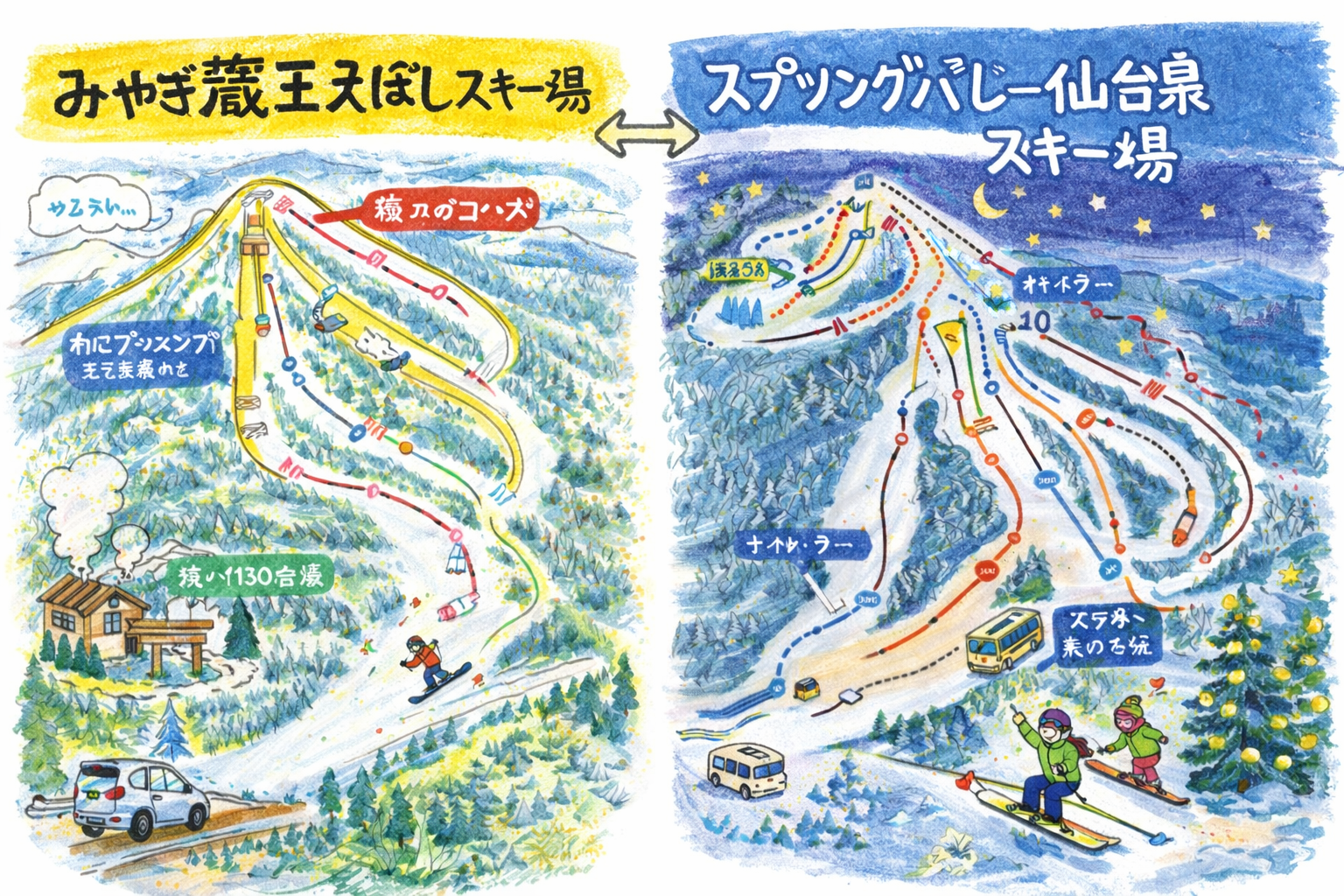 | 比較項目 | みやぎ蔵王えぼしスキー場 | スプリングバレー仙台泉スキー場 |