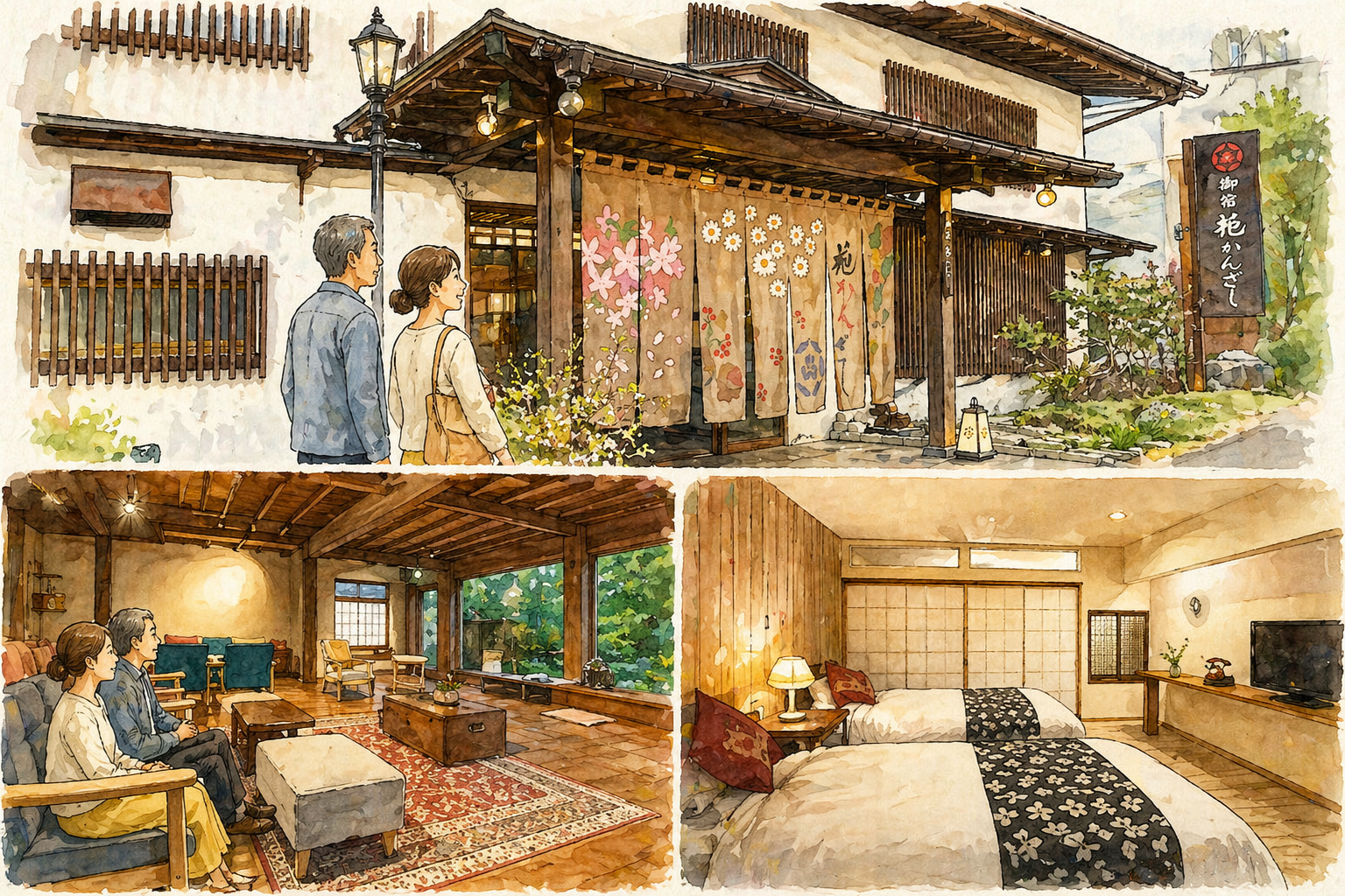 温泉旅行の満足度は、ひとつの要素だけでは決まりません。お湯がよくても食事が合わなかったり、料理が楽しめても館内で落ち着けなかったりすると、少し残念に感じることがあります。お宿 花かんざしは、温泉、食事、雰囲気をバランスよく楽しみたい方に向いています。先ほどお伝えしたように、全8室の小さな宿なので、ゆっくり過ごしたい旅に合わせやすいのも特徴です。派手な設備よりも、心地よい時間を大切にしたい方には、満足しやすい宿といえるでしょう。