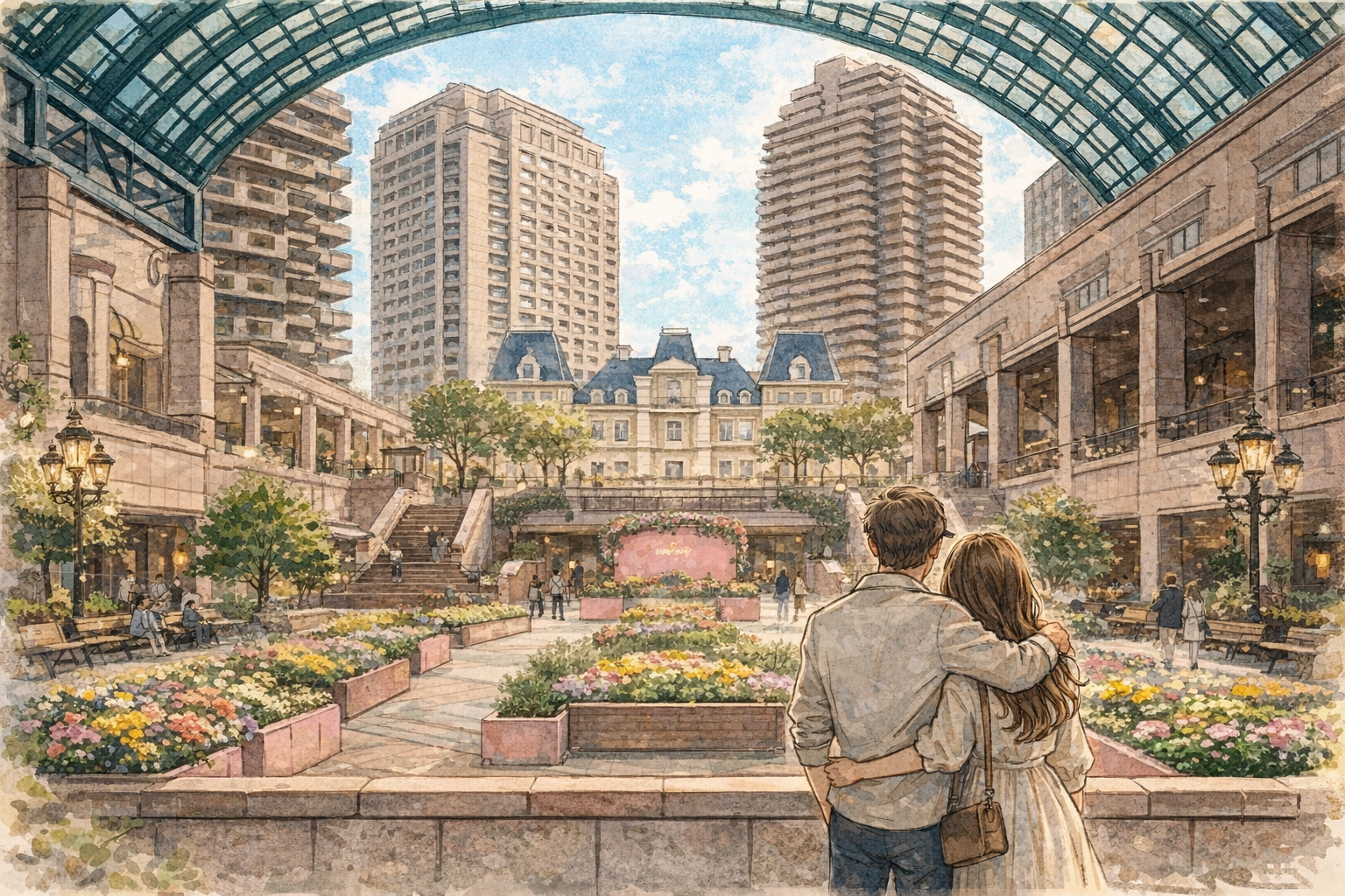 ここは建物の並びや広場の作りが落ち着いていて、ふだんの会話でも自然に“特別感”が出やすいです。背伸びしたプランを組まなくても、ゆっくり歩くだけで絵になります。服装はきれいめでも、動きやすさを少し優先すると安心。歩くペースを相手に合わせると、気まずさも減ります。途中で写真を撮るなら、通路の端に寄って一枚だけにすると周りにも優しいでしょう。会話が途切れたら「次はカフェにする?それとも先に散歩?」のように二択で聞くのがコツ。迷いが減ると、優雅さが残ります。