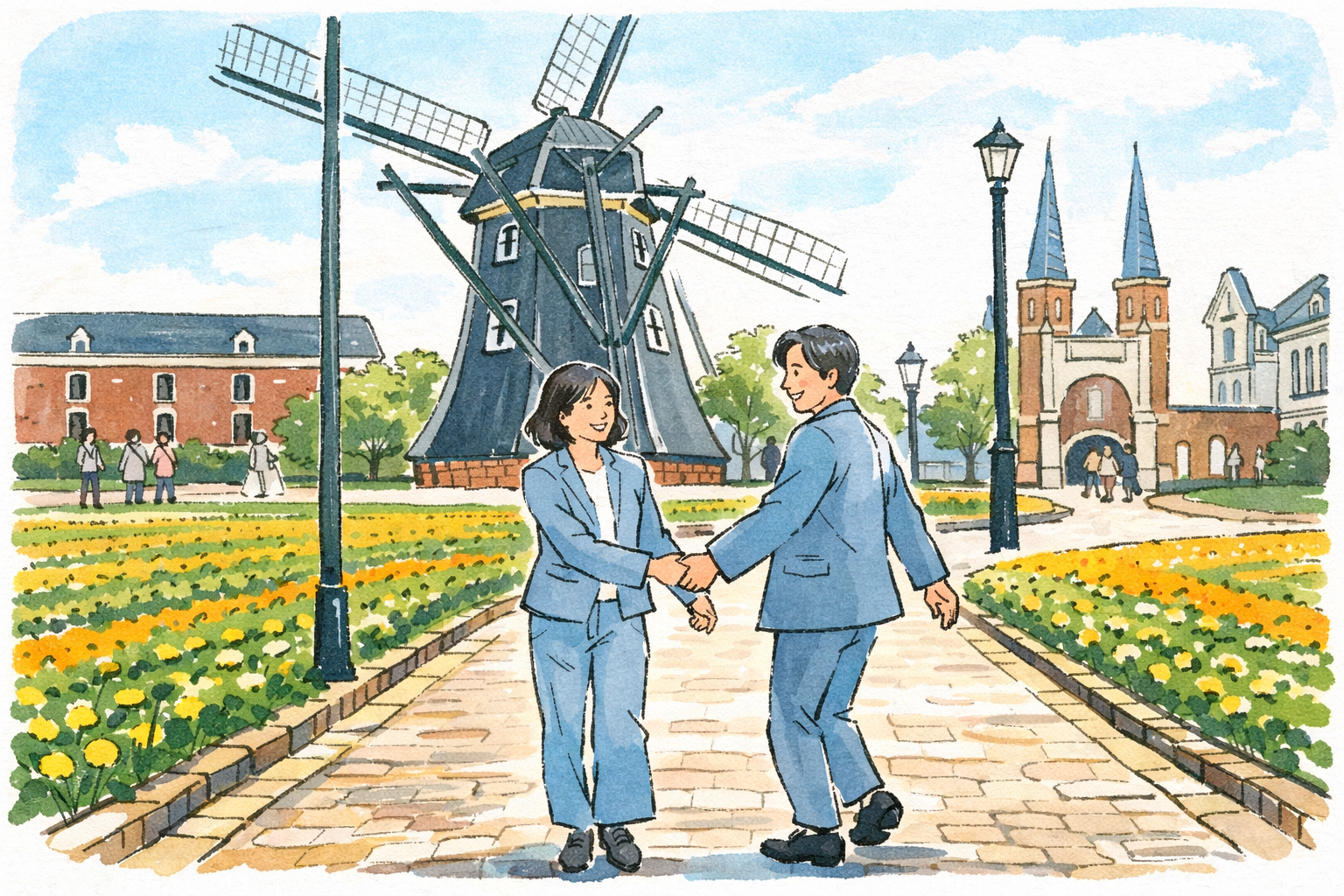 長崎県のハウステンボスは広く、見どころも多いので、カップルで行くなら「全部やる」より「2人らしく過ごす」計画が合います。1泊旅行にすると、夜景も翌朝の静けさも味わえて、自然とプライベート感が高まります。