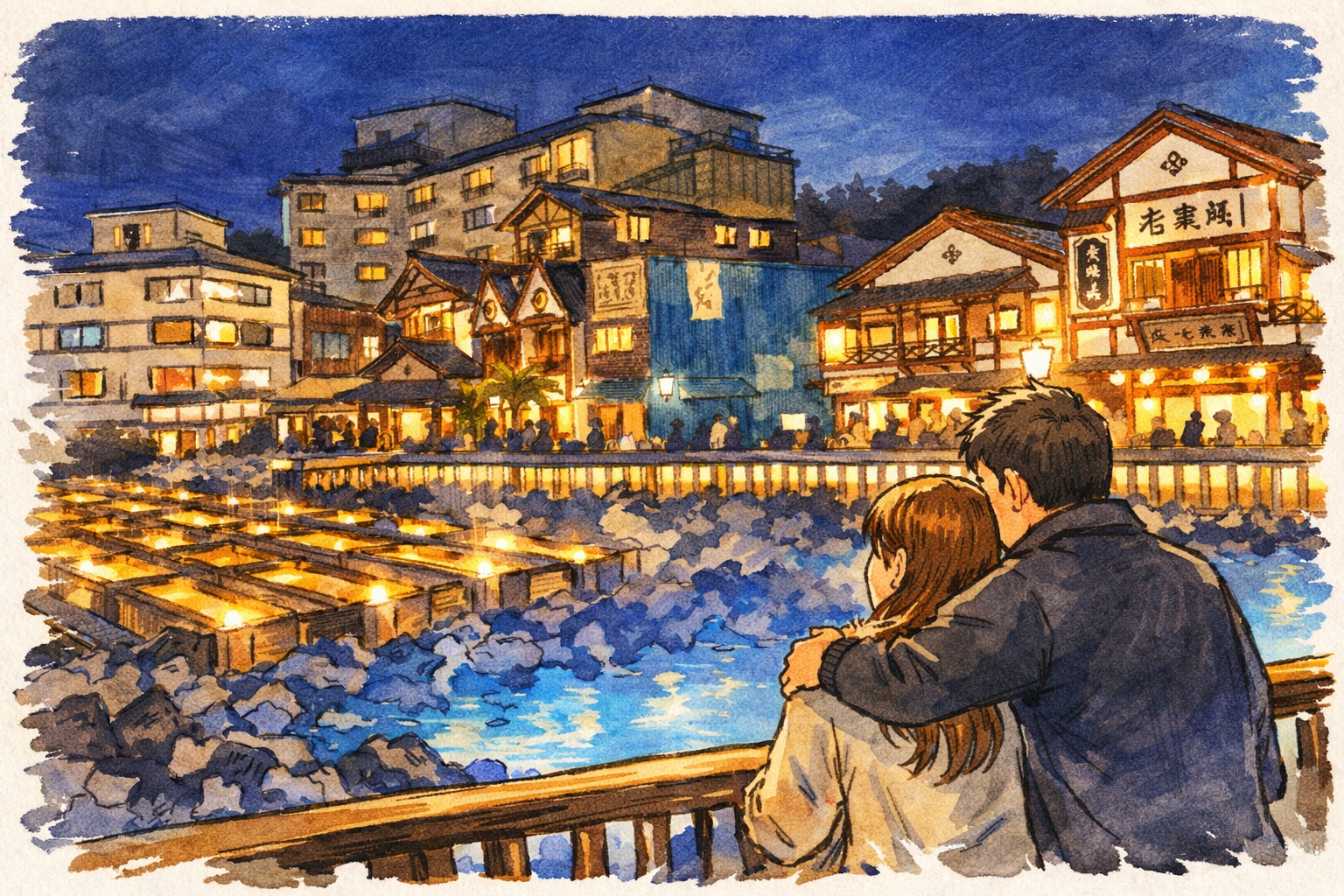 夜の温泉街は、昼とは違う落ち着いた空気があります。ただ、長く歩くと冷えたり疲れたりするので、短時間で満足する形にしましょう。おすすめは「宿で温泉→少しだけ外へ」の順番です。体が温まってから出ると寒さが和らぎます。歩く距離は短めにして、明るい場所だけを選ぶと安心。写真を撮るなら、風景を一枚だけ狙うと気分が上がります。帰ったら温かい飲み物でひと息。こうした締めの流れがあると、翌日の朝もスッキリしやすくなります。夜に無理をしないことで、ふたりのテンションも保ちやすいです。歩くのがつらくなったら、潔く引き返すのも正解。旅は長く続けるより、気持ちよく終えるほうが記憶に残ります。
