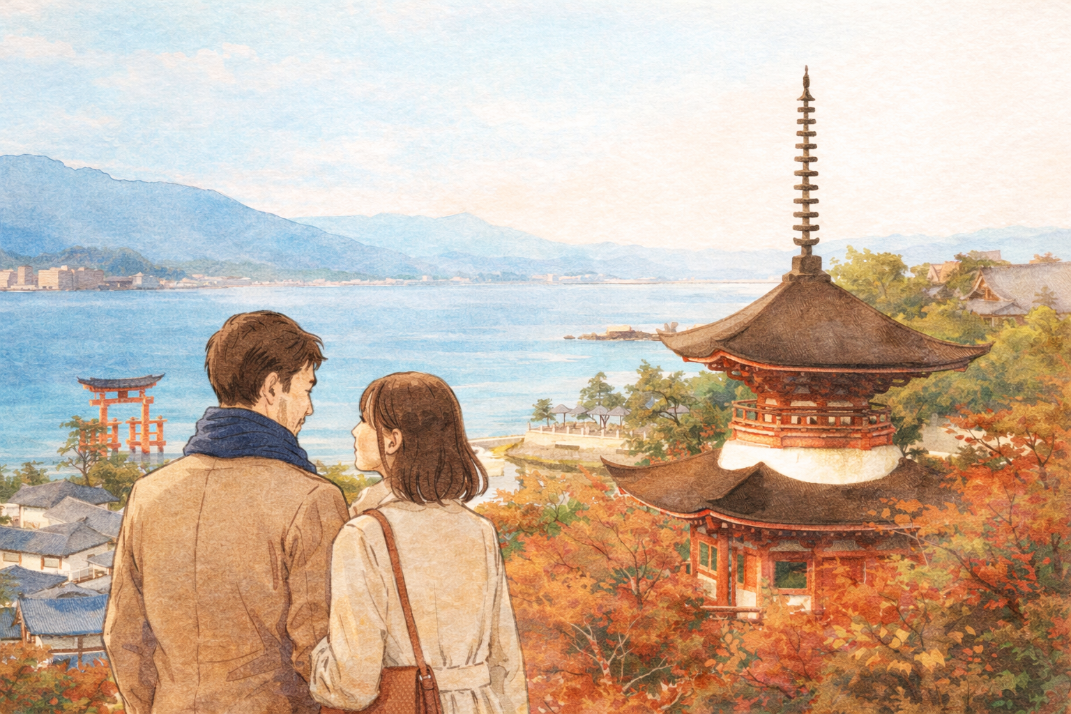 宮浜温泉の魅力は、観光の楽しさと宿での静かな時間を両立しやすいことです。宮島に近いため、昼は紅葉や海の景色を見ながら散策し、夕方からは落ち着いた宿でゆっくり過ごす流れを作りやすくなります。秋はしっとりとした空気の中で景色が美しく見え、冬は澄んだ空気が瀬戸内の眺めをより印象的にしてくれます。にぎやかな街中に泊まる旅とは違い、少し距離を置いて穏やかな夜を楽しめるのが大きなポイントです。観光だけで終わらない、余白のある1泊旅行。その心地よさが、秋冬のカップル旅に宮浜温泉が選ばれる理由といえるでしょう。