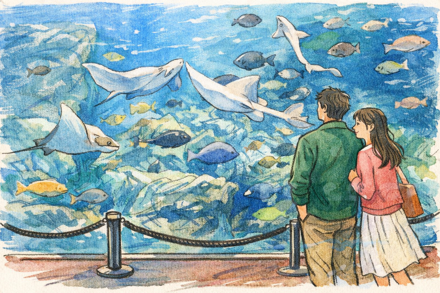 写真を撮るなら、水槽の青さが広く入る場所を選ぶときれいに残ります。ガラスの反射が気になるときは、カメラをガラスに近づけると写り込みが減りやすいです。体験エリアは、急がずに“のんびり見守る”のがコツ。はしゃぎ過ぎなくても、ゆったりした時間が特別に感じられます。ふたりで同じ方向を見て、同じタイミングで笑える場所。それが水族館デートの強みです。