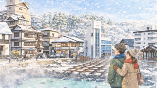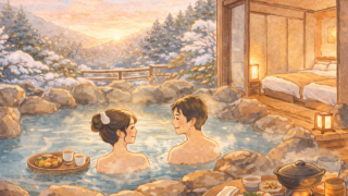 冬の定山渓温泉でカップル・プライベート旅行を満喫。隠れ家的な宿を紹介し、個室露天風呂付・部屋食有の選び方、温泉街の雰囲気や風景を二人で静かにおこもり的に楽しむコツ、東京・札幌からのアクセスや移動手段まで整理。