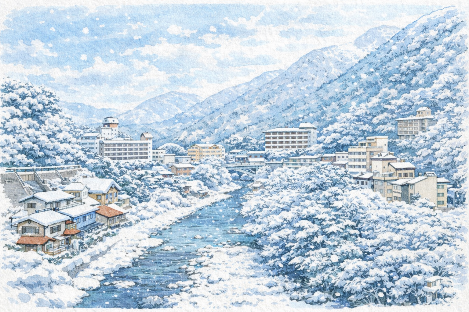 「温泉街の雰囲気や風景も味わいたいけど、寒い中で歩き回るのはきつそう…。おこもりもしたいし、どう組み立てればいいの?」