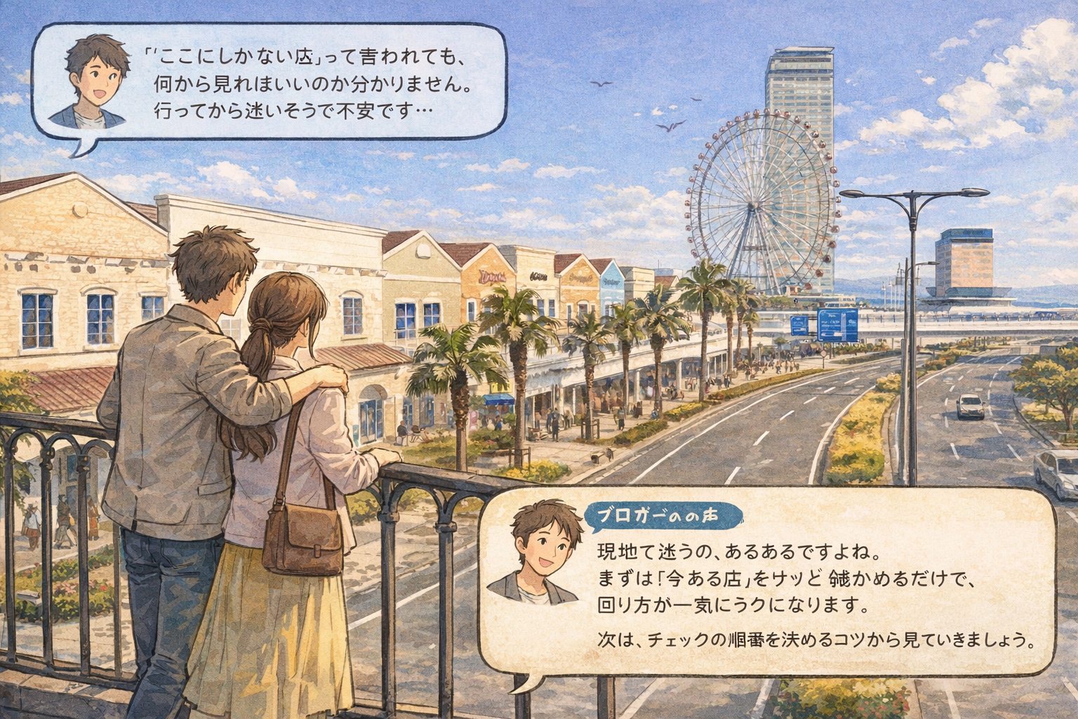 りんくうはお店の数が多いので、「ここでしか出会えない感じ」を探すにはコツが要ります。迷わず見つけるための順番と、見落としを減らす確認ポイントを分かりやすくまとめます。