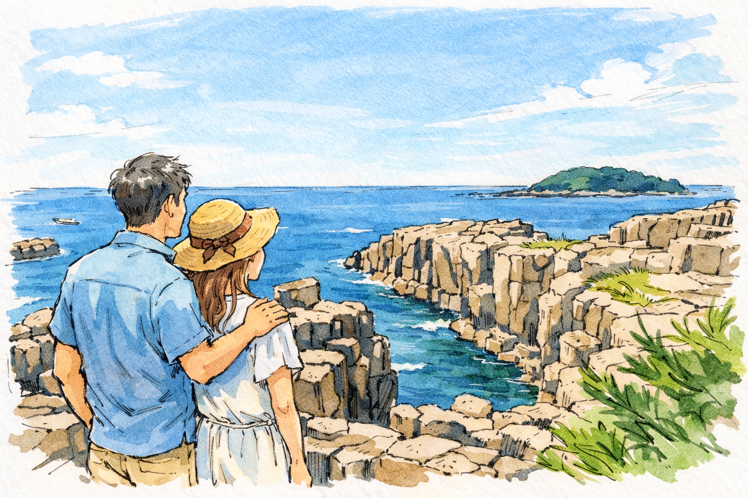 夏の東尋坊三国温泉は、明るい海の色と開放感のある景色が印象的です。海辺を歩くと風が通り、日常から少し離れたような気分になれます。観光地として知られている場所ですが、少し視点を変えると、騒がしさよりもゆったりした時間を楽しみやすいのが特徴です。昼は東尋坊や周辺の景色を楽しみ、夕方はやわらかな光の中で海を眺める。夜は宿で温泉に入りながらひと息つく。そんな流れが自然に作れるので、背伸びしすぎない大人のデートに向いています。夏らしい明るさがありながら、2人きりの時間も感じやすい旅先です。