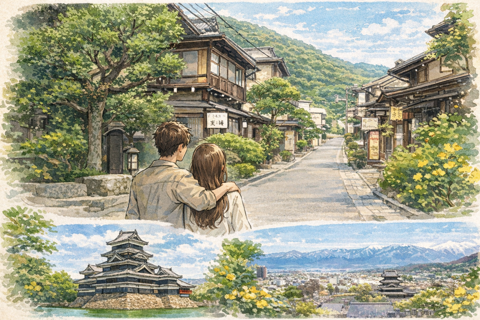 春の旅では、松本城やその周辺の城下町を組み合わせると、やわらかな雰囲気の1泊旅行になりやすいです。歴史ある建物を眺めながら歩くだけでも旅気分が高まり、温泉へ向かう前の時間がぐっと豊かになります。中町や縄手通りのような散策しやすい場所もあるため、長時間歩き回らなくても楽しみを感じやすいでしょう。春は外を歩く気持ちよさがある一方で、無理に予定を詰める必要はありません。少し散策したら早めに宿へ入り、温泉や食事の時間をゆっくり味わう流れがよく合います。観光が主役というより、温泉旅をやさしく彩る寄り道として春の街歩きを取り入れるイメージです。静かな時間と軽い散策の両方を楽しみたいカップルに、ちょうどよい組み合わせといえます。