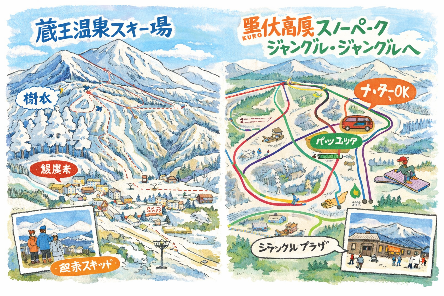 山形県・蔵王温泉スキー場と黒伏高原スノーパーク ジャングル・ジャングルの違いと特徴を一目で比較